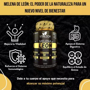 MELENA DE LEÓN, suplemento premium masticable, formulado para potenciar tu salud y bienestar general. Con una mezcla exclusiva de suero de leche, vitaminas B1, B2 y B6, y una selección de ingredientes naturales, MELENA DE LEÓN ofrece un apoyo integral para tu vitalidad y equilibrio.