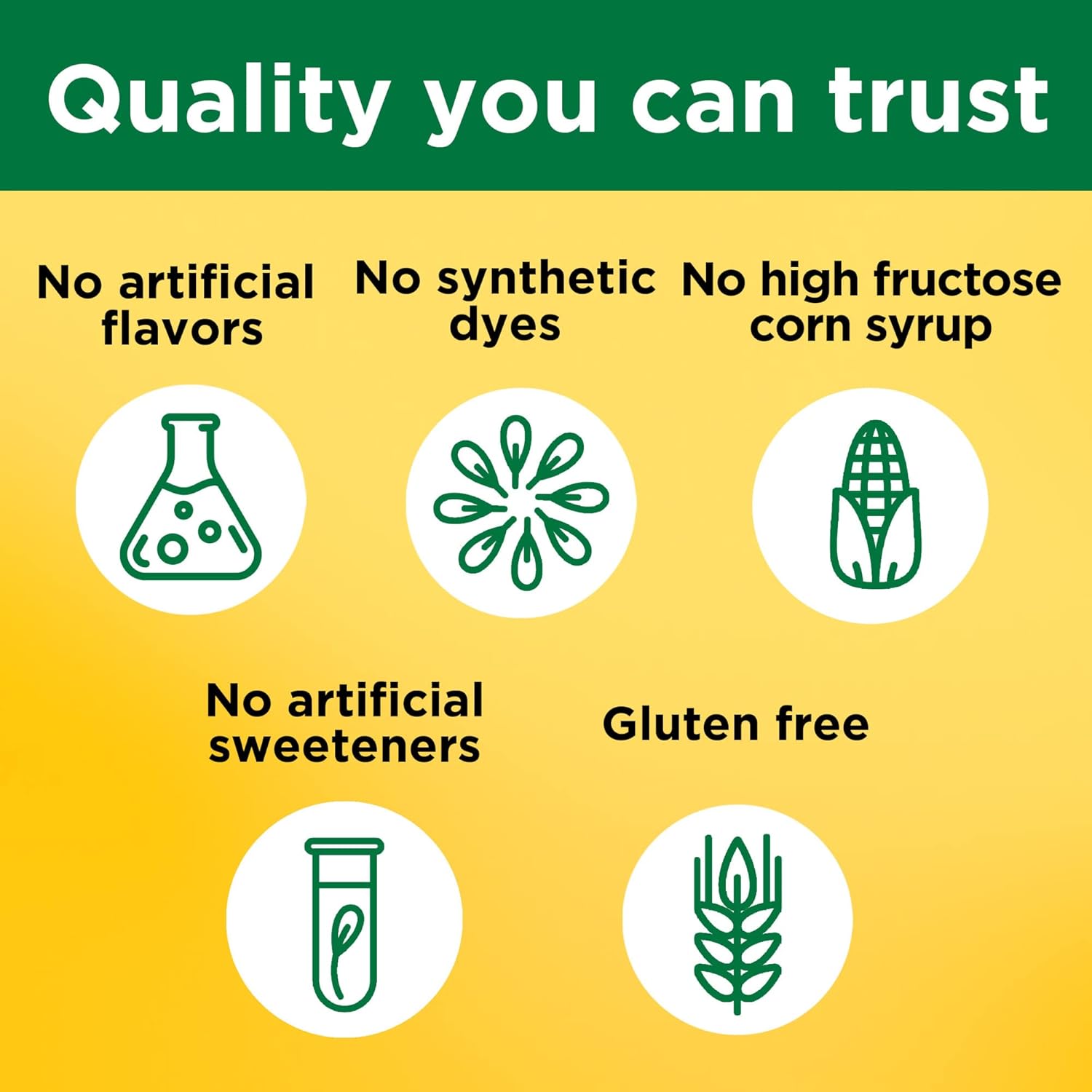Este suplemento dietético multivitamínico sin gluten no contiene sabores artificiales, tintes sintéticos, jarabe de maíz de alta fructosa y sin edulcorantes artificiales