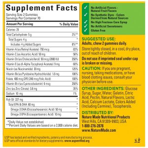 Suplemento de apoyo nutricional diario: contiene una botella de 140 unidades de gomitas multivitamínicas Nature Made + Omega-3 para un suministro de 70 días