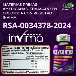 RESVERATROL PURO ORIGINAL CON PEPTIDOS DE COLAGENO, VITAMINA C y E – 1000mg