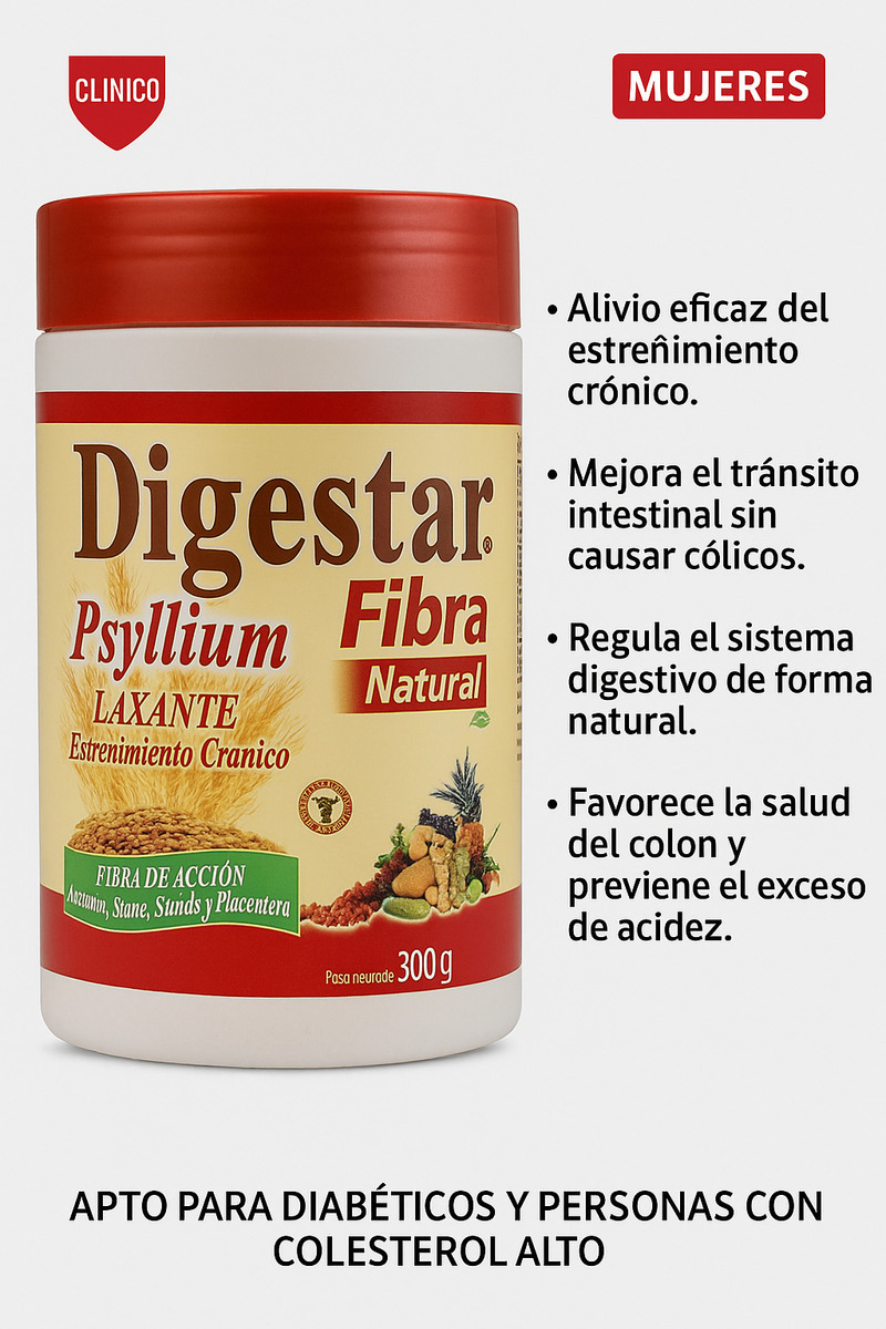 Es un suplemento de fibra 100% natural a base de Psyllium Husk, reconocido por su capacidad para absorber agua, aumentar el volumen de las heces y facilitar su evacuación. Es un laxante suave, no irritante, ideal para uso frecuente en casos de estreñimiento crónico, colon perezoso o dietas bajas en fibra.